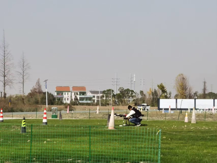 无人机企业工作人员正在华东无人机基地规定场地试飞。 文汇报记者单颖文摄